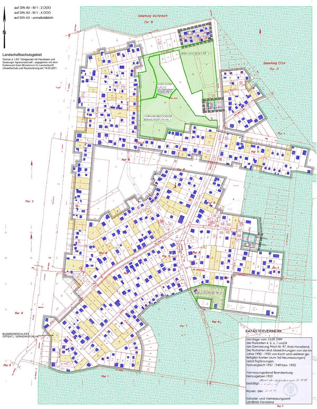 S A T Z U N G E N n a c h § 3 4 B a u G B Für die Zulässigkeit von (Bau-)Vorhaben hat der Bundesgesetzgeber neben der verbindlichen Bauleitplanung mit dem § 34 Abs. 4 des Baugesetzbuches den Gemeinden weitere Planungsinstrumente zur Seite gestellt: die Klarstellungs-, die Entwicklungs- sowie die Ergänzungssatzung. Bereits seit den 1990er Jahren sind solche Satzungen für die heutigen Städte und Gemeinden Potsdam (Fahrland), Schwedt/Oder (Gatow, Kummerow) und Wustermark (Buchow-Karpzow, Priort) erarbeitet worden. Nach 2000 dann auch Klarstellungs-, Entwicklungs- und Ergänzungs-satzungen für die Schwedter Ortsteile Criewen, Heinersdorf und Zützen und Vierraden. |